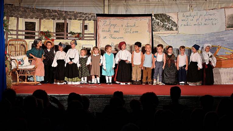 V četrtek so na mavhinjski oder stopili otroci občinskega vrtca Šempolaj z igro Življenje v starih časih med Trstom in Krasom. Sledila je koroška mladinska skupina ŠTKGRA katoliškega prosvetnega društva Šmihel z igro V garderobi.