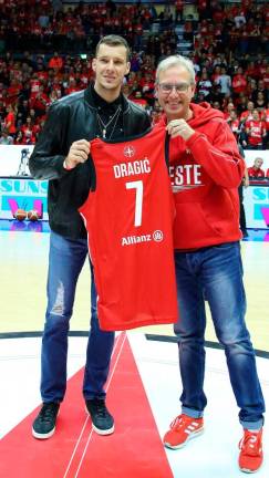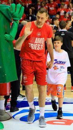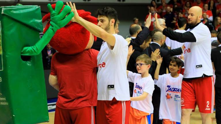 V nedeljo, 5. maja, so se v prostorih tržaške dvorane Allianz Dome odborniki in pokrovitelji Jadrana, ZSŠDI, kluba Pallacanestro Trieste 2004, KK Ilirska Bistrica, KK Sežana ter Košarkarske zveze Slovenije udeležili skupnega delovnega sestanka. Alma Pallacanestro Trieste je nato obeležila sodelovanje z Jadranom, s tem da so minikošarkarji slovenskih društev ob spremstvu vaditeljev Jane Croselli, Andreja Vremca, Mare Vremec in Damjana Košute na igrišče pospremili člane Alme in Sassarija, marsikateri mladi igralec pa je izkoristil priložnost za selfi s posebnim gostom večera, in sicer Goranom Dragićem, ki mu je med drugim Almin pooblaščeni upravitelj Gianluca Mauro poklonil tržaški dres z natisnjenim Dragićevim priimkom in z njegovo številko 7.