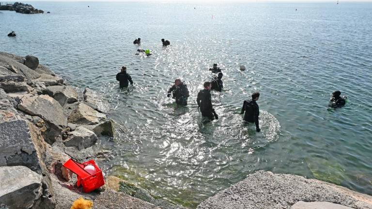 Pred kopališčem Sticco pri Miramaru je v soboto stekla čistilna akcija morskih globin in obale. Na območje, ki ga je med 3. in 4. novembrom razdejalo nepričakovano plimovanje, so valovi prinesli večjo količino odpadkov in s kopnega odnesli opremo in nekatere dele kopališča.
