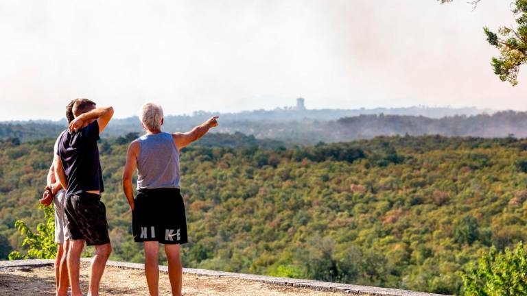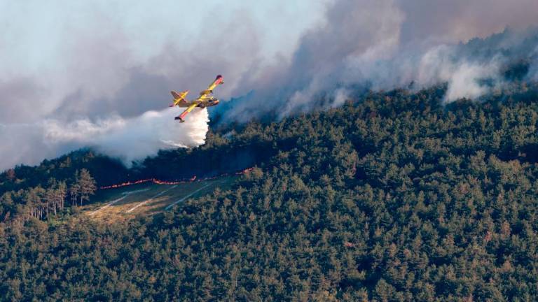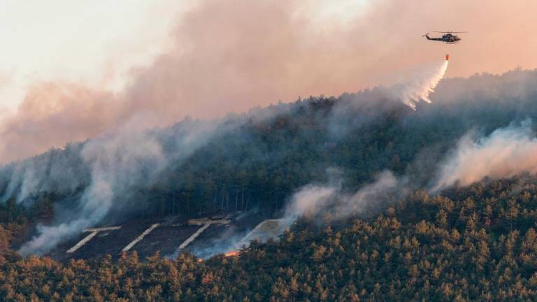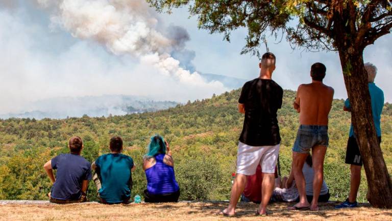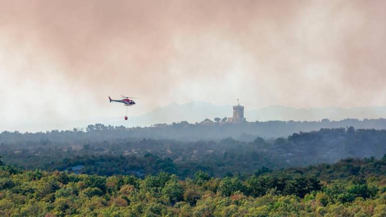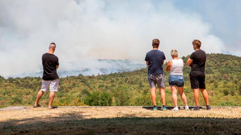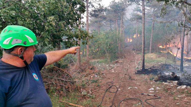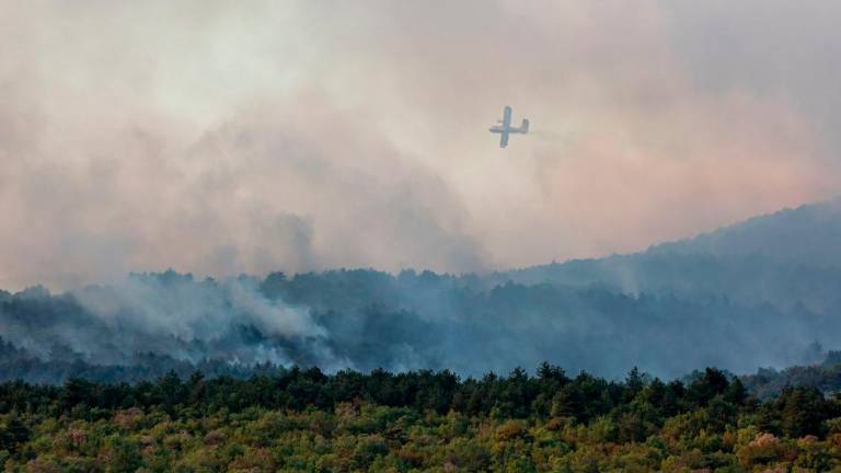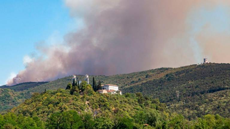 Štiristo gasilcev, pet helikopterjev in kanader so se včeraj in danes borili z obsežnim gozdnim požarom, ki se je v nedeljo dopoldne razbesnel na Renškem vrhu na slovenskem Krasu. Zaradi suše in močne burje so se ognjeni zublji širili z veliko hitrostjo, gašenje je bilo zelo težavno. Zgorelo naj bi med 390 in 400 hektarjev gozdnih površin.