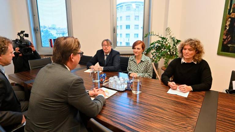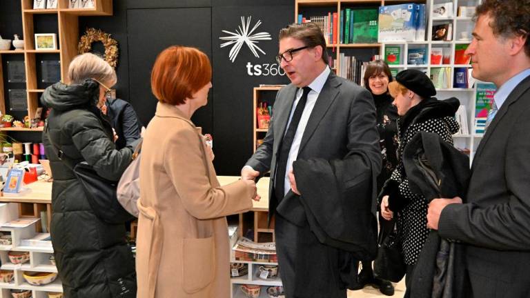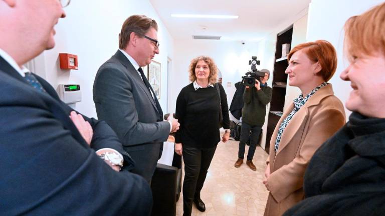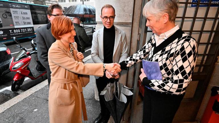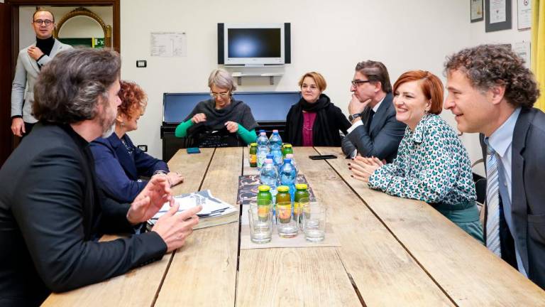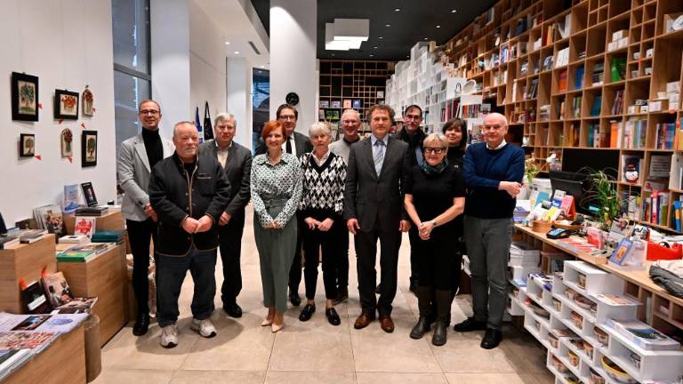 V prvih popoldanskih urah je ministrica Asta Vrečko obiskala Narodni dom, kjer se je srečala z ravnateljico Narodne in študijske knjižnice Luiso Gergolet in s predsednico Mariso Skerk ter z direktorjem Slovenskega raziskovalnega inštituta SLORI Devanom Jagodicem.