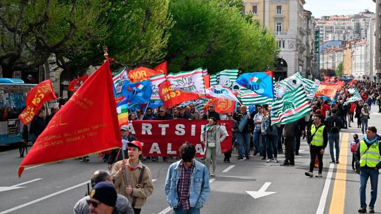 Včeraj je v Trstu potekal množičen prvomajski shod, ki so ga organizirali sindikati CGIL, CISL in UIL. Shod se je začel pri Sv. Jakobu, kjer so bili tudi predstavniki sindikata USB, ki so se na koncu napotili na Trg Libertà, medtem ko so ga ostali zaključili na Borznem trgu. Shoda se je udeležilo kakih 3000 ljudi, v ospredju pa je bila kriza tovarn Wärstilä in Tirso ter 75-letnica ustave.