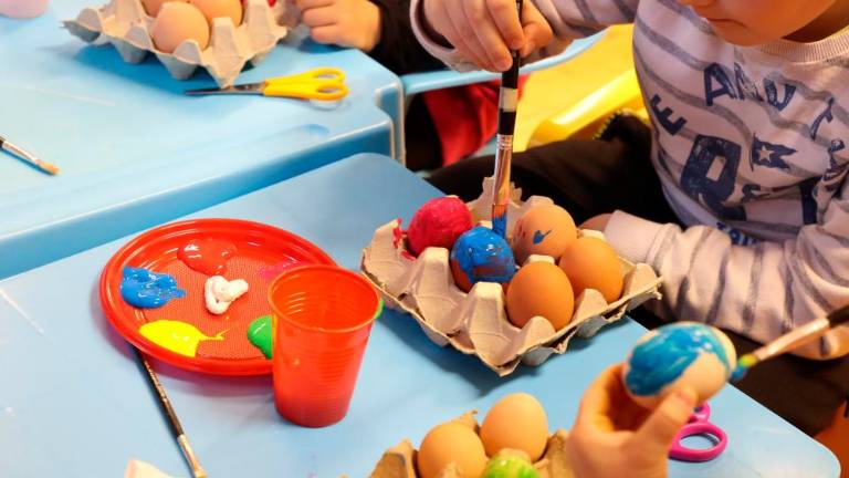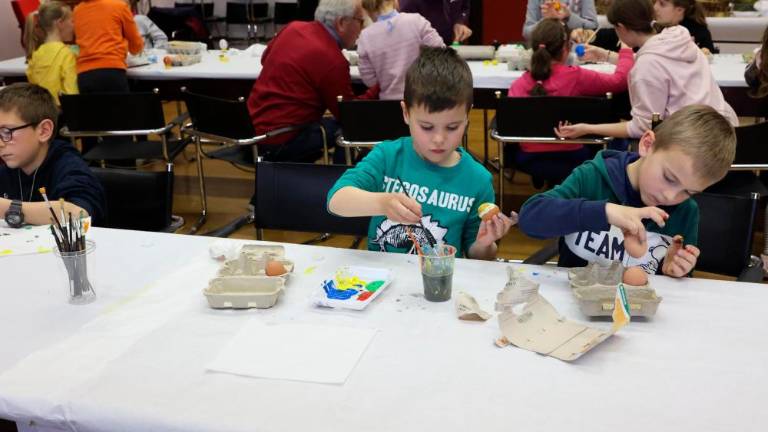 V Števerjanu in Sovodnjah so otroci barvali pirhe. Za ustvarjalni delavnici sta poskrbeli kulturno društvo Briški grič in Kulturno društvo Sovodnje.
