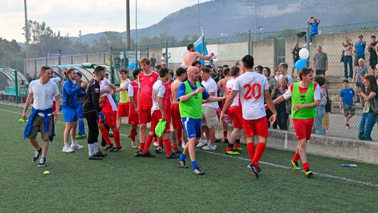Nogometaši Brega so v zelo razgibanem finalu končnice za napredovanje v nedeljo, 28. maja, v Dolini šele po podaljških z 2:1 premagali Opicino in tako napredovali v 1. amatersko ligo. Na tribuni so navijači prižgali bele in modre bakle. Po trikratnem sodnikovem žvižgu je bilo že več navijačev na igrišču kot na tribuni. V Dolini se je slavje zavleklo pozno v noč.