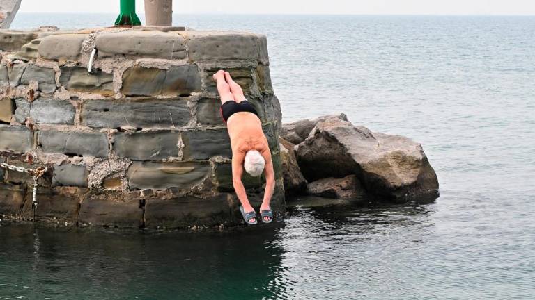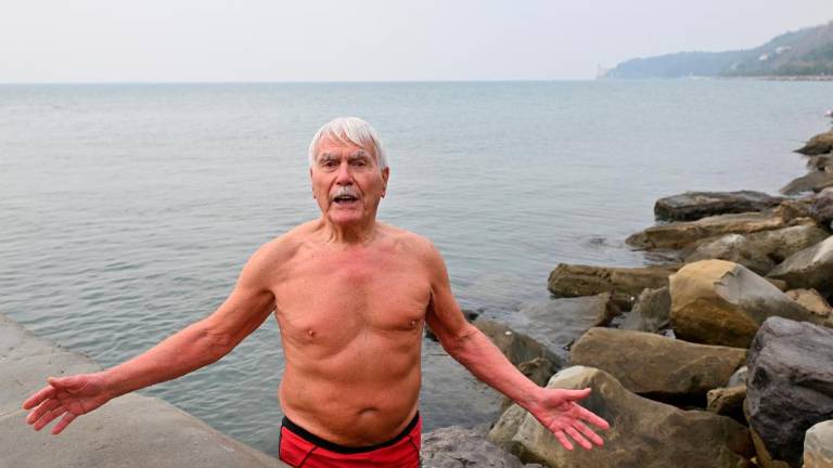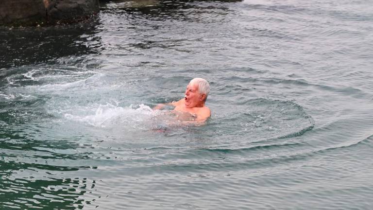 Tudi letos so najpogumnejši v Barkovljah na prvi dan leta skočili v morje. Med njimi je bil tudi 84-letni tržaški Slovenec Mario Cigar, ki je tradicionalni obred opravil že več kot 60 let.