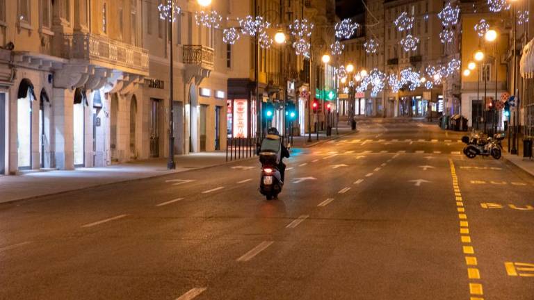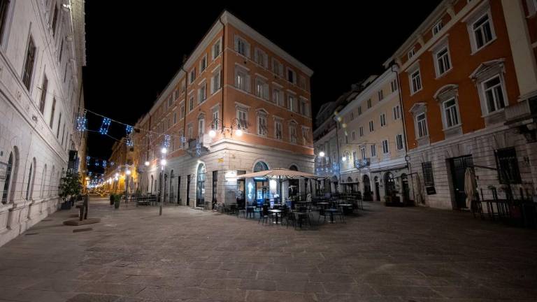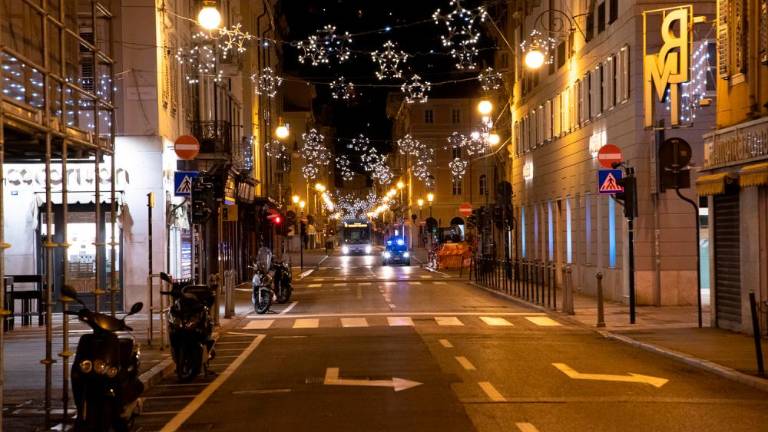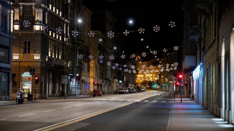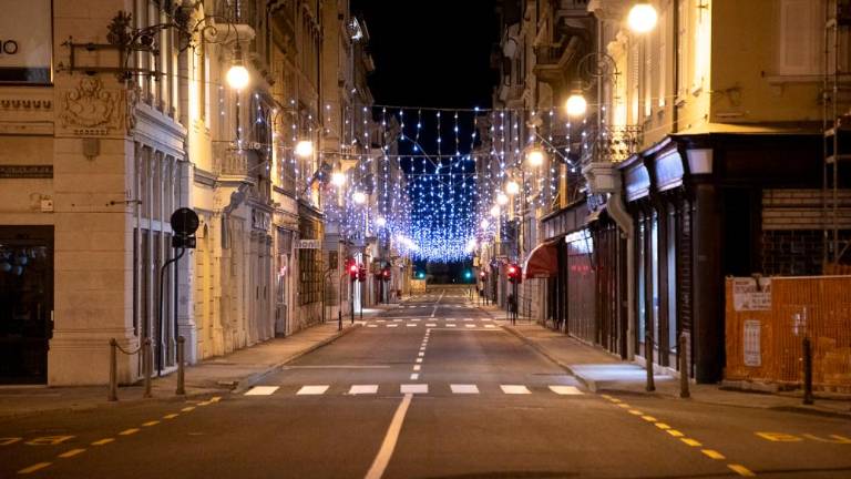 V Trstu so v petek, 6. novembra, prižali praznične lučke. Ob njih pa je bilo mestno središče po 22. uri, ko je stopila v veljavo policijska ura zaradi pandemije, pravo mesto duhov.