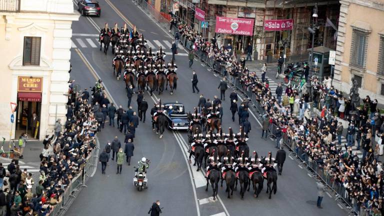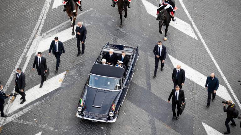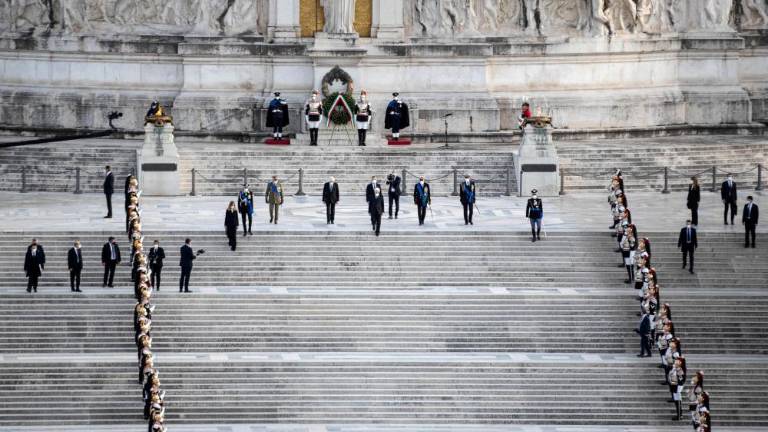 V kabrioletu lancia flaminia iz leta 1961 se je odpeljal na Beneški trg, kjer je položil venec na grob neznanega junaka. Nebo nad Rimom so preletele Frecce tricolori, vozilo s predsednikom pa se je v spremstvu posebne enote karabinjerjev odpeljalo skozi mesto do Kvirinala.
