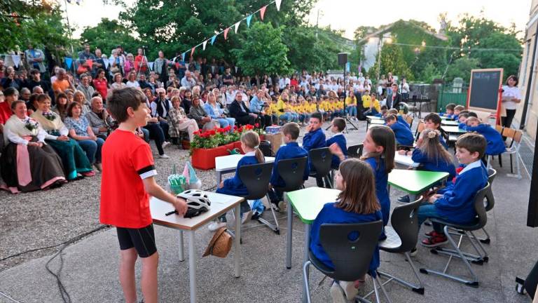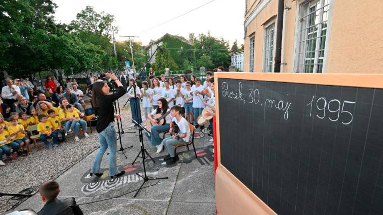V petek so na Proseku obeležili 30-letnico poimenovanja proseške osnovne šole po slikarju Avgustu Černigoju. Slovesnost je potekala na šolskem dvorišču, spremenjenem v učilnico na prostem, s tablo, klopmi in stolicami, v kateri se je iztekel šolski dan, od prihoda učencev in »učiteljic« v šolo, do »odrešujočega« šolskega zvonca, ki je naznanil bližnje počitnice za 41 učenk in učencev proseške šole. Posamezne prizorčke sta povezovala glasba in petje. Najprej je pod taktirko Tine Renar zaigrala mlada godba, sledila je pesem otrok bližnjega otroškega vrtca Marjana Štoke, nato so zapeli učenci sosedne nižje srednje šole Frana Levstika. Pa še otroški pevski zbor Vasilij Mirk je pridal svoj glas ob glasbeni spremljavi. Pevsko sta šolo objela moški pevski zbor Vasilij Mirk pod vodstvom Gorana Ruzzierja ter ženski pevski zbor Prosek-Kontovel pod taktirko Marka Štoke. Glasbeno je slovesnost povzdignilo igranje Godbenega društva Prosek pod vodstvom Irine Perosa.