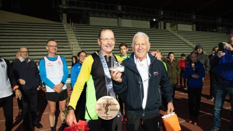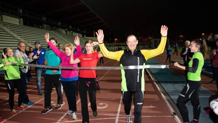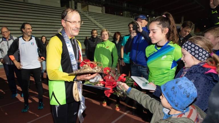 Petdeset krogov za prav toliko let športnega udejstvovanja. Lonjerski hitrohodec Fabio Ruzzier je v petek 7. decembra popoldne na Grezarju na svojevrsten način praznoval okroglo obletnico. Obenem je oblekel vse drese klubov, za katere je nastopal. Doslej je prehodil toliko kilometrov, da bi vsaj 10-krat obkrožil svet. Zadnji krog je prehodil z vsemi družinskimi člani.