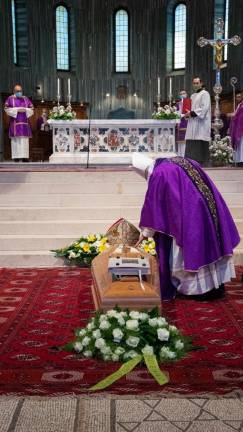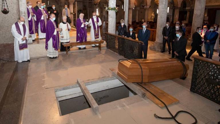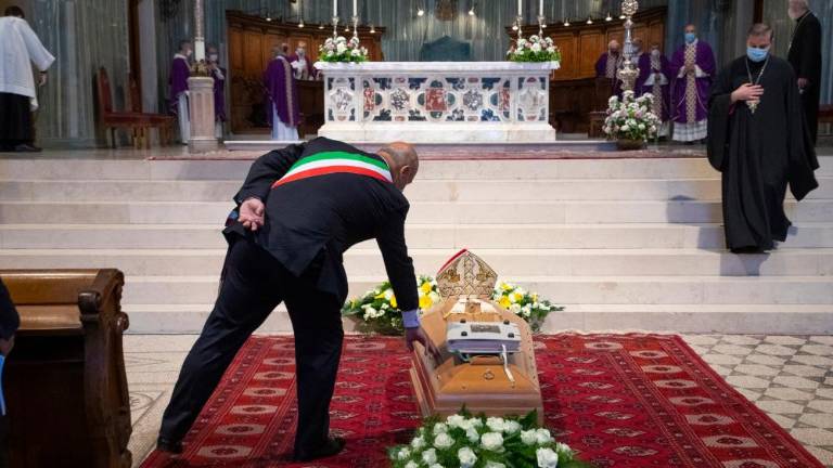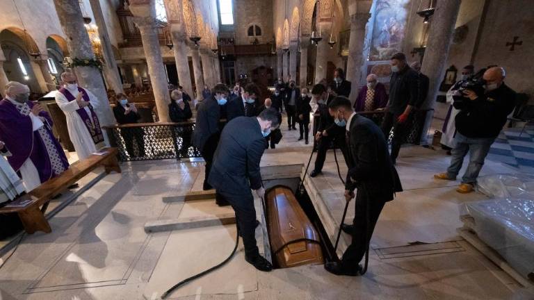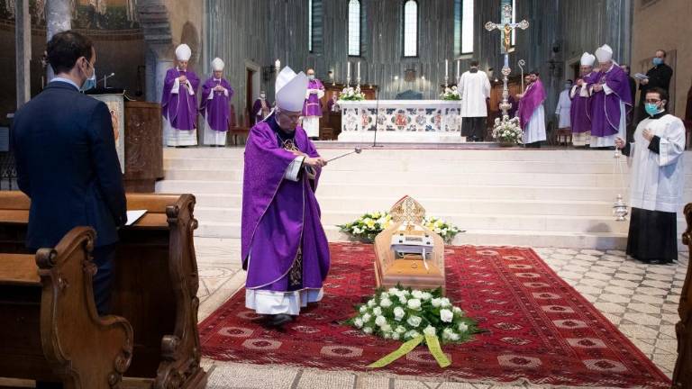 Upokojeni tržaški škof Evgen Ravignani, ki je umrl preteklega 7. maja v starosti 88 let, odslej počiva v grobnici v stolnici sv. Justa ob predhodnikoma Antonu Santinu in Lovrencu Bellomiju. Pogrebna maša, ki jo je vodil tržaški škof, nadškof Giampaolo Crepaldi ob somaševanju škofov iz Gorice, Vidma in Vittoria Veneta ter upokojenega škofa iz Pordenona in tržaških duhovnikov, je potekala sicer javno, a ob omejeni udeležbi zaradi varnostnih določil za zajezitev pandemije koronavirusa.