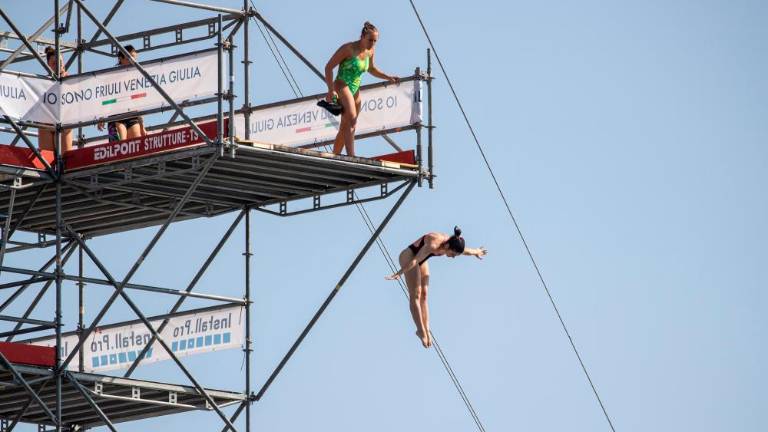 Iznad stolpa, ki so ga postavili pred Velikim trgom, so se skakalke med valove pognale iz višine dvajsetih metrov. Skakalci pa so v morje poleteli z vrtoglavih 27 metrov. Pri tem so v morje prileteli s hitrostjo 90 kilometrov na uro.