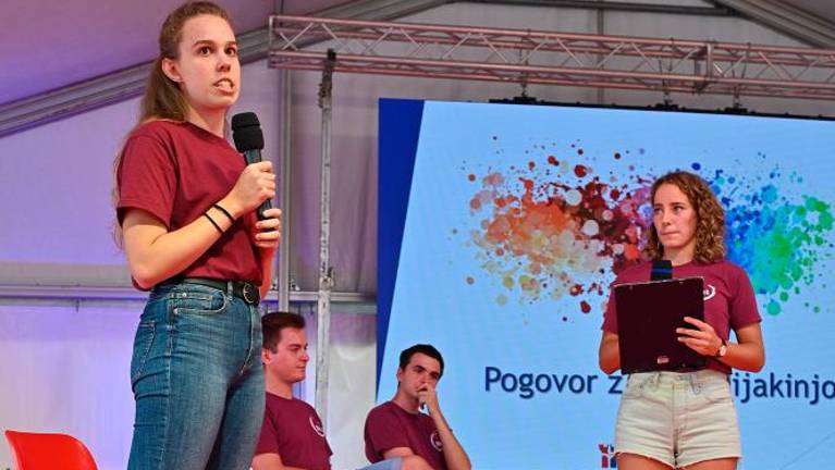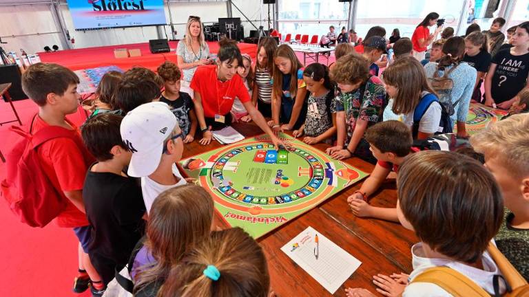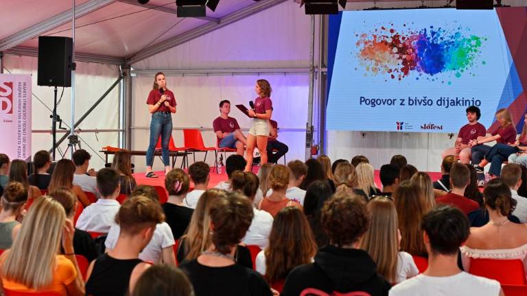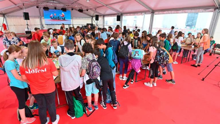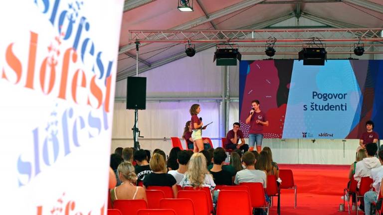 Slofest je v petek, 15. septembra, zjutraj potekal predvsem v znamenju mladih. Obiskale so ga predvsem šole vseh stopenj. Učenci in dijaki so v šotoru med drugim tekmovali v medkulturnih igrah, v gledališču Miela pa so bile na sporedu otroške gledališke predstave. Višješolci so se pomerili v fotoorientaciji, izvedeli pa so tudi za priložnosti, ki jim jih ponuja študij v Sloveniji. V Narodnem domu so se skupaj z dijaki italijanskih šol iz Trsta in s slovenske obale udeležili srečanja s Štefanom Čokom in Zairo Vidau, nekateri pa so tudi obiskali Multimedijsko središče Stik in razstavo o Borisu Pahorju.