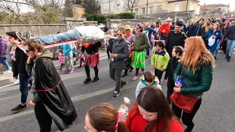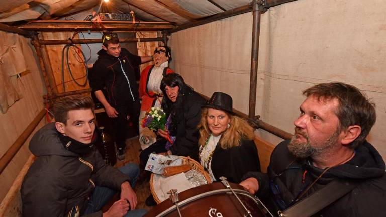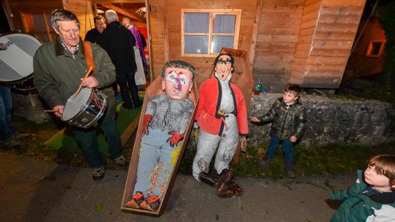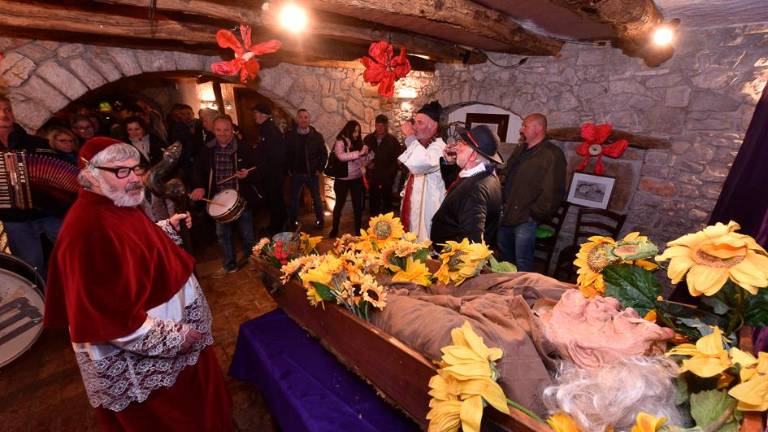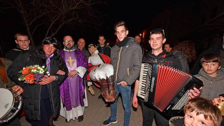 Predstavniki pustnih delegacij iz Praprota, Prečnika, Slivnega, Cerovelj, Palkišča, Samatorce, Saleža in Zgonika so obiskali šempolajsko štalco, da bi se poslovili od pusta. Letošnji neimenovani pust je ležal na parah, da vi vsem žalujočim omogočili zadnje slovo od njega.