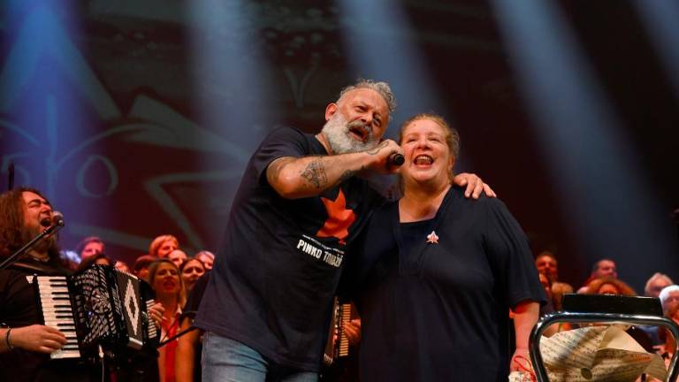 Tržaški partizanski pevski zbor Pinko Tomažič je z glasbenimi prijatelji v torek, 6. junija, poskrbel za veličasten, energičen in ritmičen rojstnodnevni koncert ob 50-letnici delovanja v tržaškem gledališču Rossetti. Pred nabito polno dvorano so nastopili še pevci in pevke tržaškega Coro sociale, zbora Donna Canta Donna ob spremljavi Romjanskih muzikantov, Ženski pevski zbor Kombinat in dulcis in fundo še priznana italijanska glasbena skupina Modena City Ramblers.