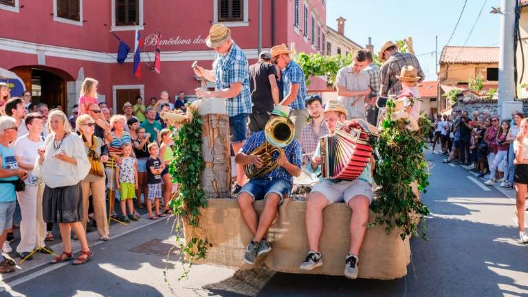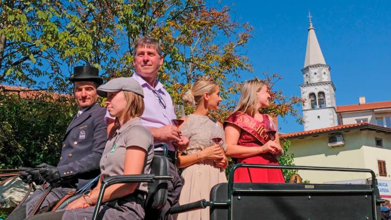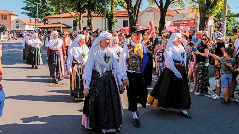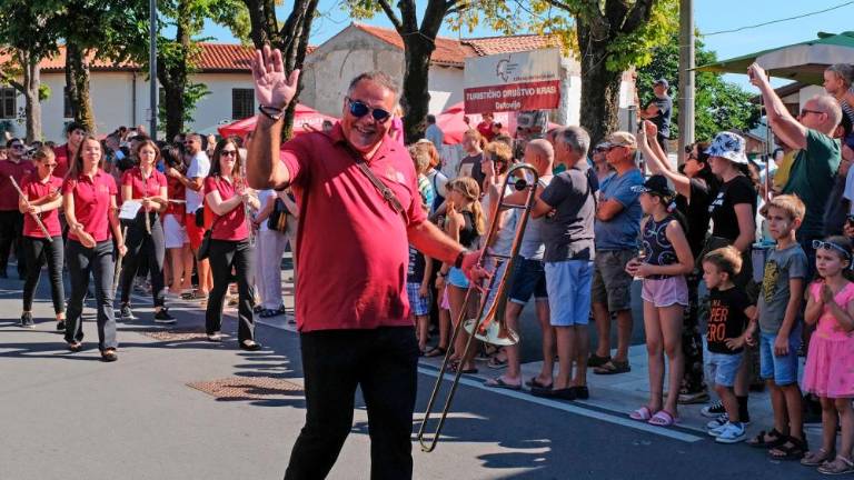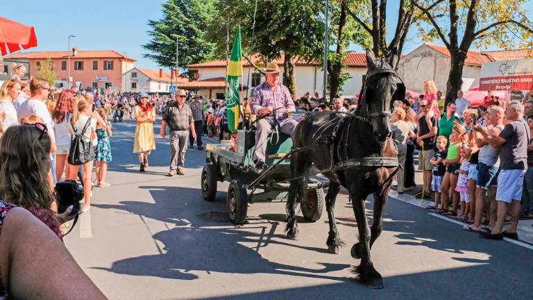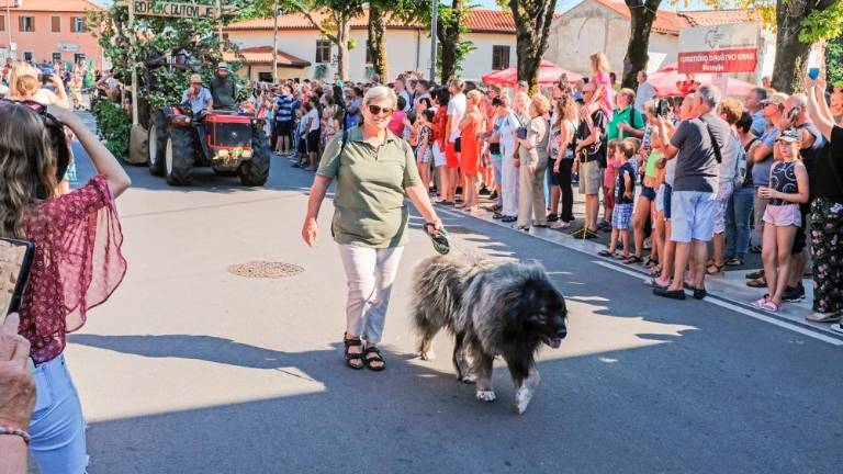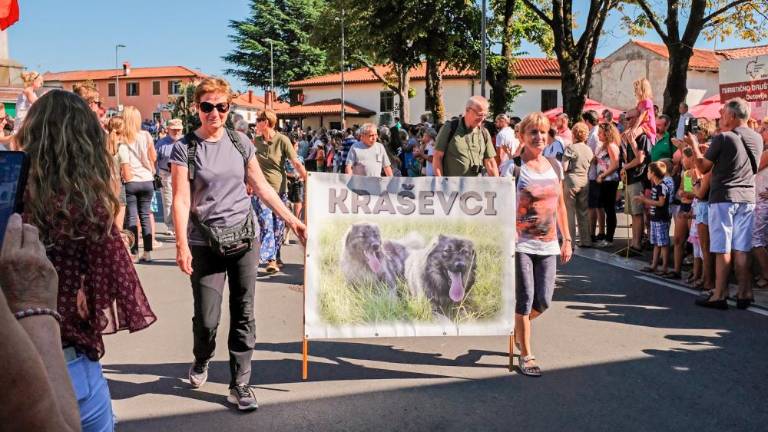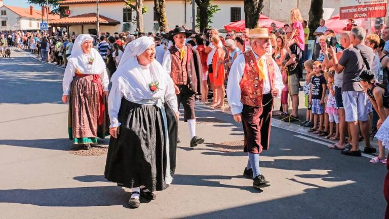 V Dutovljah je bilo ob 50. prazniku vina in pršuta veselo ves vikend, predvsem pa v nedeljo, ko so po vasi priredili sprevod. Udeležila sta se ga tudi bika in kraški ovčarji, s kolesi so se na kraški praznik pripeljale štorske mlekarice. Domačini so tako Kraševce kot obiskovalce navdušili z ogromnim pršutom na vozu.