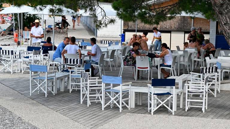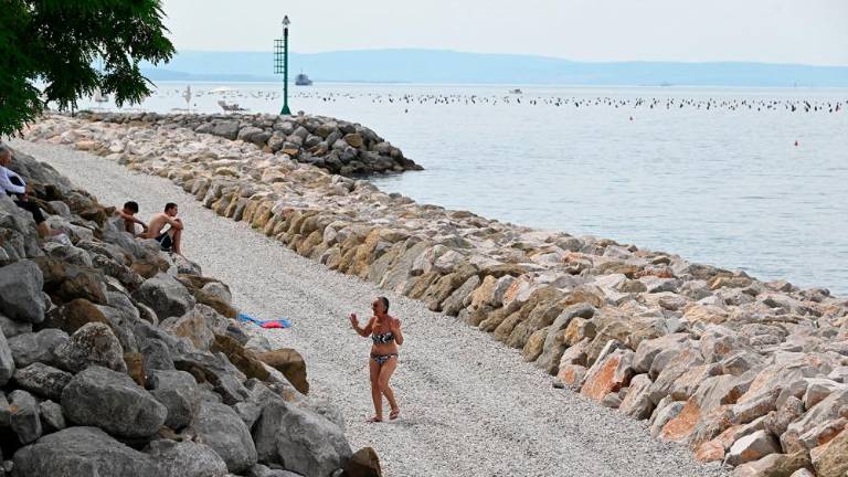 Soparnih trideset stopinj Celzija je včeraj dopoldne spremljalo obiskovalce kopališča Castelreggio, ki so na ležalnikih uživali v prvih dneh uradno odprte poletne sezone. V morju še ni bilo množice plavalcev, saj je za marsikoga temperatura vode še prenizka, da bi se prepustil valovom. Prijetno pa je bilo tudi pod senčnikom z brisačo na zaobljenih kamenčkih ali v baru pri belih mizicah s pijačo v roki. Slovenci, Italijani in Avstrijci, ki so prispeli v Sesljan včeraj, so verjetno opazili infrastrukturna dela za plažo, ki pa niso moteča. Morda le estetsko neprijetna, a nujno potrebna. Če pa bi v zaliv prispeli, denimo, v ponedeljek, bi pred sabo na meji z naseljem Portopiccolo imeli popolnoma različno plažo, neurejeno, brez osnovnih storitev, ponekod nevarno.