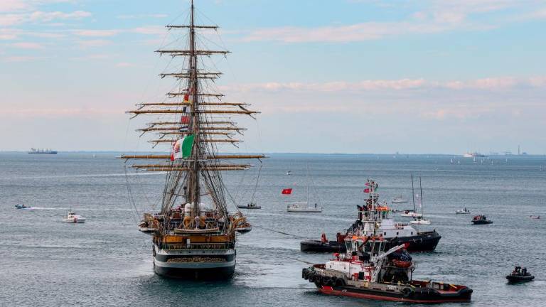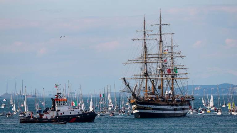 Večtisočglava množica na mestnem nabrežju, predstavniki vlade in lokalnih oblasti, par sto plovil na morju, dva preleta nacionalne akrobatske skupine, vojaški helikopterji in ognjemet so danes pospremili prihod najstarejše ladje v italijanski mornarici, trijambornice Amerigo Vespucci, ki je v Trstu zaključila svojo leto in pol trajajočo svetovno turnejo.