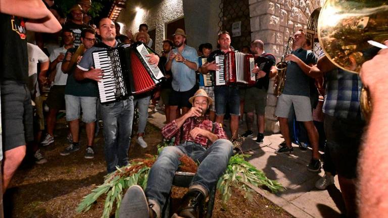 Zvok harmonike, slamniki in glasno vriskanje so v četrtek pod večer naznanili, da se pripravlja velika fešta. Kraški par – Dana Puric in Ivan Kerpan – sta večer preživela v družbi prijateljev na fantovski oz. dekliški in se v poznih večernih urah na repenskem trgu še zadnjič zavrtela v ledih stanu.