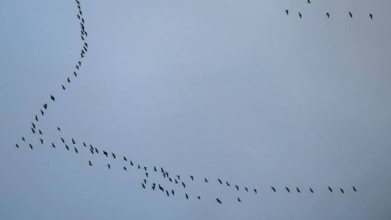 Nekdanjo goriško pokrajino je v četrtek preletelo preko 20.000 žerjavov (v latinščini Grus grus), ki se selijo iz Severne Afrike proti Baltskim državam, Skandinaviji in Rusiji in letijo v značilnih formacijah v obliki črke »v«. Opazili so jih v številnih krajih, preleteli so tudi ornitološko opazovalnico na otoku Cona, kjer so jih prešteli. Na fotografiji, ki jo objavljamo, so žerjavi med preletom Števerjana, spodaj je na voljo tudi posnetek ptic, kjer je mogoče prisluhniti tudi njihovemu značilnemu oglašanju.