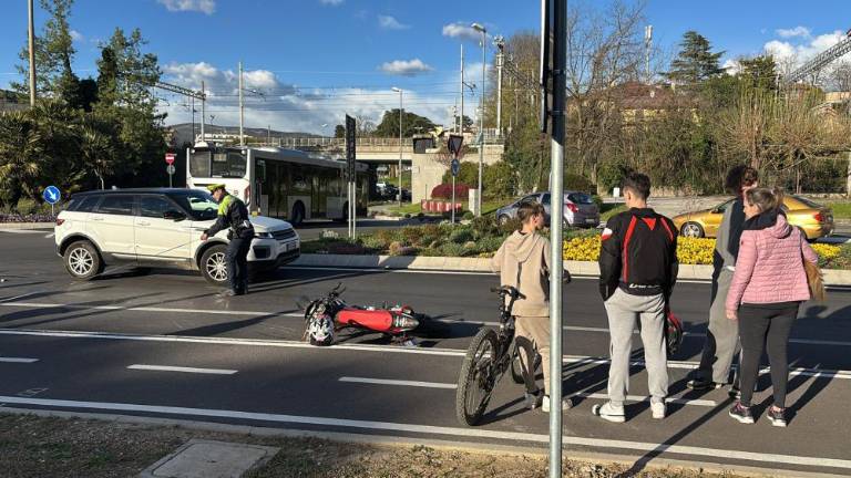 Na krožišču na Trgu Divisione Mantova v Gorici je danes (31. marca) kmalu po 17. uri avtomobil zbil 19-letnega motorista. Mladeniča so odpeljali v goriško bolnišnico, bil je vseskozi pri zavesti. Nesreča je povzročila zastoje ob vhodu v Gorico.