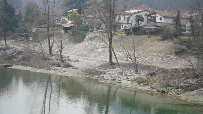 V pristojnih deželnih uradih so osnutek načrta za izvedbo sanacijskih del odobrili 31. oktobra 2017, preliminarni načrt je bil odobren 21. septembra 2022, v začetku marca leta 2023 so naposled odobrili še dokončni načrt. Dela bi se morala začeti že pred dvema letoma, vendar je prišlo do zamika, tako da so gradbeni stroji zabrneli ob koncu lanskega poletja. Potem ko so odstranili ostaline nekdanjega jezu pod »pašerelo«, so se delavci odpravili pod Podgoro, kjer so se lotili utrjevanja bregov. Pod spomenikom padlim v narodnoosvobodilnem boju so zgradili kamnomet in s kamenjem utrdili brežino.