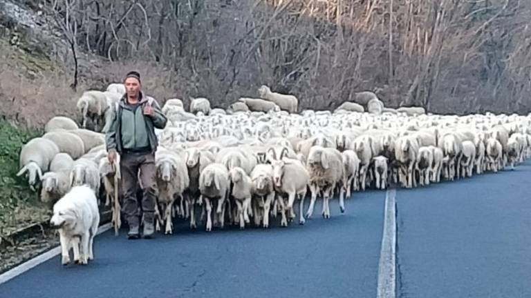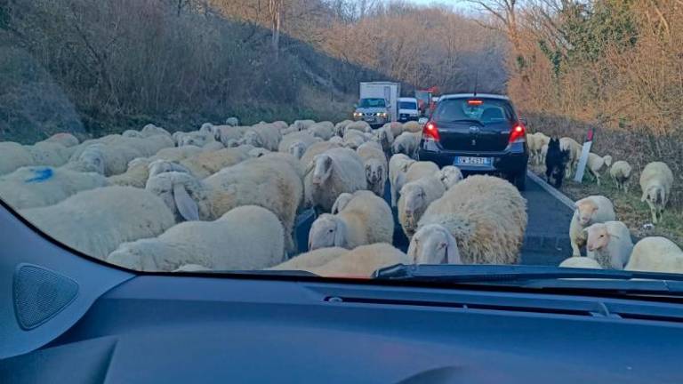 Vozniki, ki so se danes zjutraj peljali po nekdanji pokrajinski cesti št. 8 med Sovodnjami in Zagrajem, so naleteli na dokaj nenavaden prizor. Pred sabo so nenadoma zagledali veliko čredo ovac, ki jih je pastir s svojimi petimi psi vodil proti sovodenjski občini, kjer se bodo pasle nekaj dni.