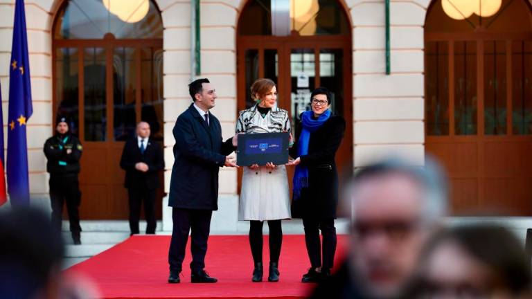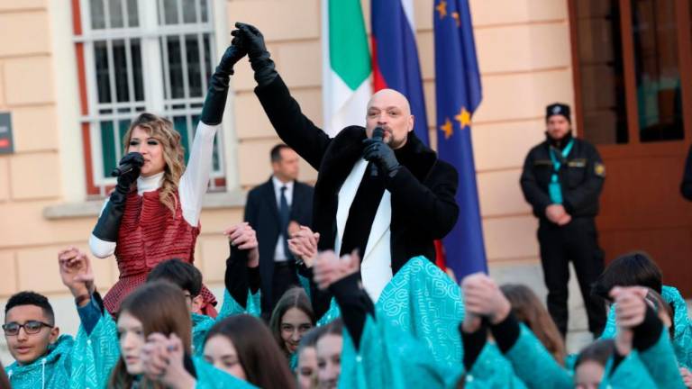 Evropsko prestolnico kulture sta uradno odprla šolarka Pija iz Slovenije in šolar Elia iz Italije z županoma.