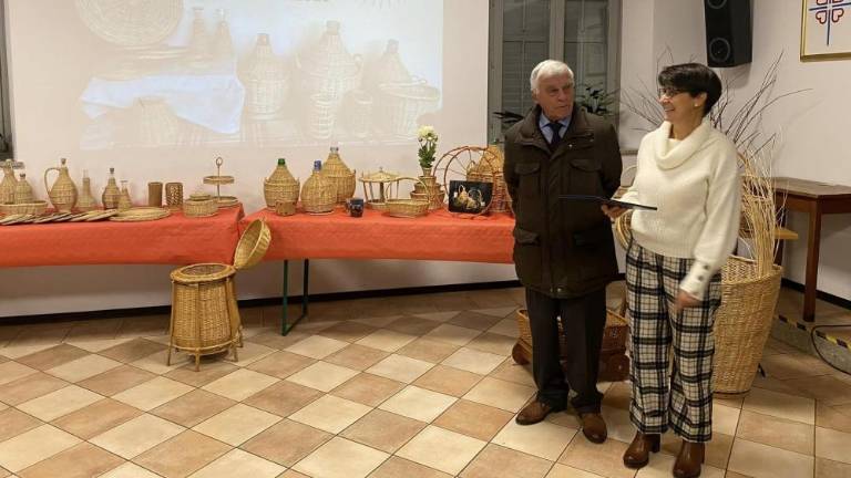 Razstavo sta organizirala Slovensko pastoralno središče in skupnost družin Sončnica. Odprta bo še danes, ko bo praznovanje 50. obletnice Slovenskega pastoralnega središča doseglo vrhunec. Na odprtju je po blagoslovu župnika Marijana Markežiča Florjana Vogriča predstavila Katerina Ferletič. Vogrič, ki se je rodil v Števerjanu leta 1936 očetu Antonu Vogriču in materi Marici Rožič, se je pletarstva naučil od očeta. »To ročno spretnost si je Florijanov oče pridobil od Benečanov, ki so zahajali v Brda. Ustavljali so se na kmetijah in opravljali razna dela. Med temi je bilo tudi pletenje košev za različno uporabo,« je povedala Katerina Ferletič, ki je pojasnila, da je pletarstvo ena izmed najstarejših obrti na Slovenskem, kjer so predvsem na kmetijah pletene izdelke uporabljali pri vsakodnevnih opravilih. Florjan Vogrič je osnovno šolo obiskoval v Števerjanu, potem pa se je, ko mu je bilo 17 let, zaposlil v Gorici v veleblagovnici Standa. Leta 1965 se je poročil in si z ženo Bruno v Pevmi ustvaril družino. »Po službi se je Florjan redno posvečal pletenju predvsem košar, ki so služile za nabiranje sadja,« je še dejala Florjanova snaha in pojasnila, da je svojo tehniko še izboljšal, ko se je po 36 letih neprekinjenega dela upokojil. Takrat se je lotil tudi drugih pletenih izdelkov: od otroških vozičkov in zibelk do steklenic različnih velikosti, namiznih izdelkov, košaric, oprtnikov in jaslic. Letošnja razstava njegovih izdelkov ni prva, saj je že leta 2005 razstavljal v Kulturnem domu v Gorici, leta 2003 pa na Biofestu v Fari. Velikokrat je bil povabljen na razne dogodke, kot so likofi, odprte kleti, festivali in podobno, na katerih je razstavljal svoje predmete. Večkrat je obiskal tudi šole v domačem kraju. Vogrič sicer z velikim veseljem vsakomur razkrije skrivnosti svoje veščine v upanju, da bo še koga navdušil za to obrt. Pletenje je sicer le zadnji del dolgega procesa. Za izdelavo košev in drugih izdelkov je najprej potrebno pozimi obrezati vrbove šibe in jih dati v posode z vodo. »V prvih pomladanskih dneh, ko šibe poženejo lističe, jih Florijan olupi in posuši na soncu. Preden jih ponovno uporabi pri pletenju, jih mora vsaj tri ure močiti v vodi, da se omehčajo,« je razložila Katerina Ferletič, njene besede je sicer obogatila projekcija fotografij, ki jih je posnel Andrej Vogrič. Ob koncu so Florjanu voščili. naj še mnogo let uživa v ustvarjanju pletenih izdelkov, sicer pravih umetnin.