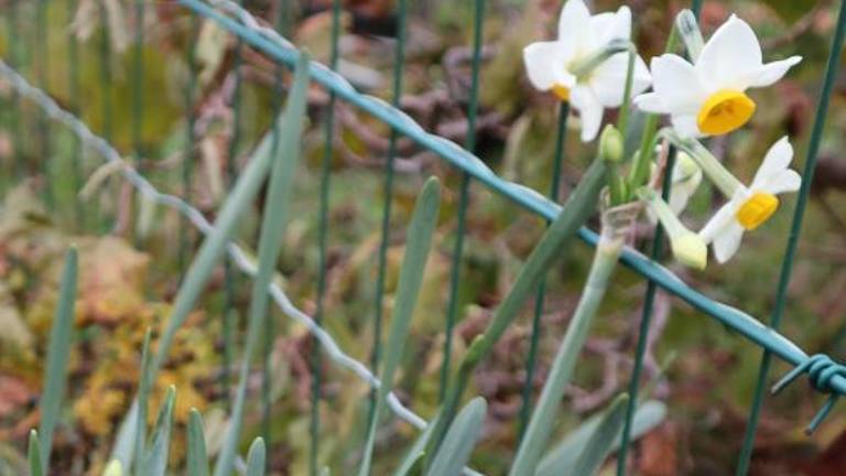 Tako že kakšen teden in že drugič letos bujno cvete jurjevka (stara domača vrsta narcise, pogosta zlasti v Brdih), ki jo botaniki uvrščajo v posebno družino, kamor spadajo tudi zvončki. Običajni čas cvetenja te rože, ki je nekdaj krasila skoraj vsak vrt, je pomlad, čas okoli sv. Jurija, kot je iz ljudskega imena mogoče razbrati. Zanimivo bo ugotavljati, kako in če se bo rastlina pripravila na novo pomladansko rast in cvetenje. Posnetek, ki spremlja članek, je bil napravljen 2. decembra.
