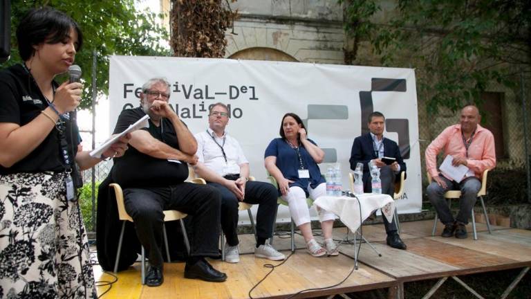 Kje je in predvsem kam gre Slovenija z Robertom Golobom? V primerjavi z vlado Janeza Janše se gotovo premika proti zahodu, a to je lahko le zemljepisni pojem, ki je v politiki oziroma geopolitiki marsikdaj zelo varljiv. Dajmo vsekakor času čas in vidimo, česar bo sposobna narediti nova vlada, je bilo slišati sinoči na srečanju z naslovom Slovenija, prehodna dežela med Zahodom in Vzhodom. Združenje Leali delle notizie je na novinarski festival v Ronke povabila predsednika italijansko-slovenskega foruma Jurija Giacomellija, politologa Boštjana Udoviča ter novinarja Vesno Humar in Ervina Hladnika Milharčiča. Vesna Humar je tudi državna sekretarka za Slovence v zamejstvu in po svetu, v Ronkah pa je nastopila kot novinarka.