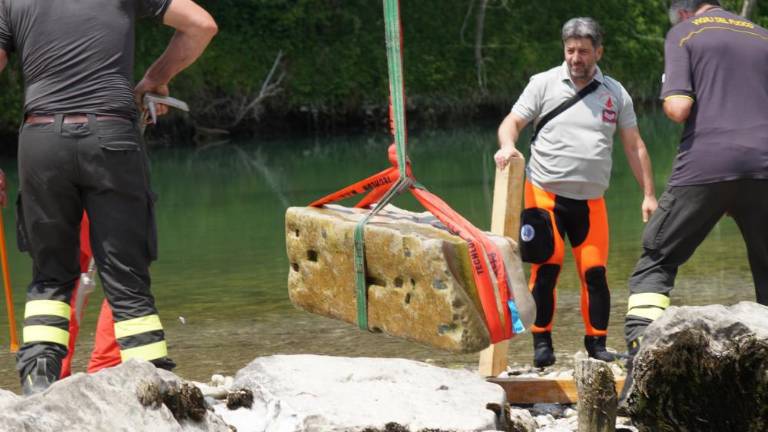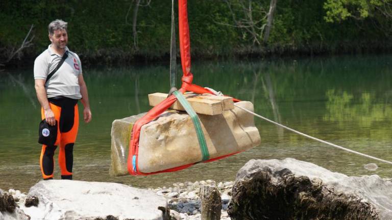 Iz Soče med Sovodnjami in Faro so v sredo potegnili na suho kamniti blok, ki je bil vgrajen v tamkajšnji nekdanji rimski most. Blok, v katerega je vklesan tudi napis, je med lanskim letom opazil raziskovalec polpretekle zgodovine Fabio Trevisan. Na delu so bili gasilci iz potapljaškega oddelka iz Trsta in iz specializirane enote iz Vidma; navzoči so bili tudi predstavniki spomeniškega varstva in karabinjerji iz videmskega oddelka za zaščito kulturne dediščine. Kamniti blok bodo najprej restavrirali, nakar ga bodo hranili v muzeju kmečke kulture v Fari.