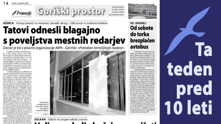V slogu ameriškega #throwbackthursday oziroma četrtkovega obujanja spominov iz preteklosti« na spletni strani vsak četrtek objavljamo kako vsebino, ki smo jo v istem tednu leta 2009 - pred točno desetimi leti - objavili v tiskani izdaji Primorskega dnevnika.