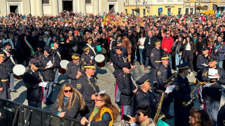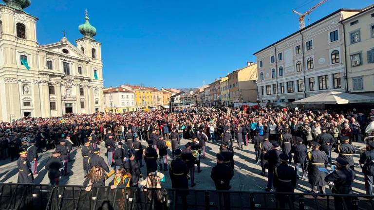 Na slavnostnem odprtju EPK policisti ne skrbijo le za varnost, temveč tudi soustvarjajo kulturni program. Policijska orkestra iz Slovenije in Italije sta se sprevodu pridružila pred Ljudskim vrtom.
