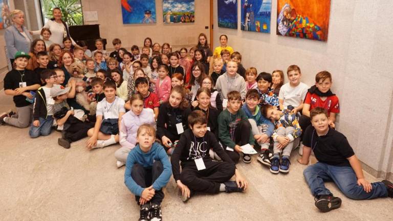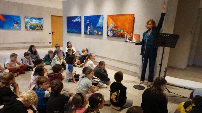 V galeriji Kulturnega centra Lojze Bratuž je v četrtek pod večer potekalo odprtje razstave Ko barve spregovorijo, ki jo je pripravila mednarodno priznana slovenska umetnica Ejti Štih in bo na ogled do konca avgusta. Dogodek je bil del projekta Pesmi, zgodbe in pripovedi v risbi in besedi, ki ga vodi društvo ARS.