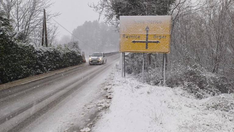 Močno sneži tudi na Trnovski planoti. Meja sneženja se je dopoldne spustila do kakih tristo metrov nadmorske višine, tako da sneži vse od Ravnice proti Trnovemu in Lokvam.