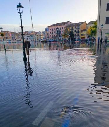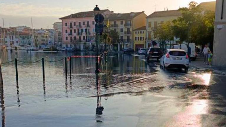 Morje je danes spet preplavilo gradeško nabrežje v sicer le ožjem obsegu kot včeraj. Na kraju so bili prostovoljci civilne zaščite, ki so nadzorovali stanje in zagotavljali varnost. Za danes je sicer civilna zaščita iz FJK že včeraj spet objavila rumeno opozorilo ravno zaradi poplavljanja morja. Povišano plimovanje, toda v občutno manjšem obsegu kot v petek, je napovedoval tudi Arso.