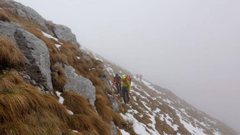 Na kraj so napotili tudi ekipo vojaškega helikopterja z združeno ekipo Helikopterske nujne medicinske pomoči in GRS ter pripadnikom gorske policijske enote. Reševanje s helikopterjem pa je preprečila gosta oblačnost.