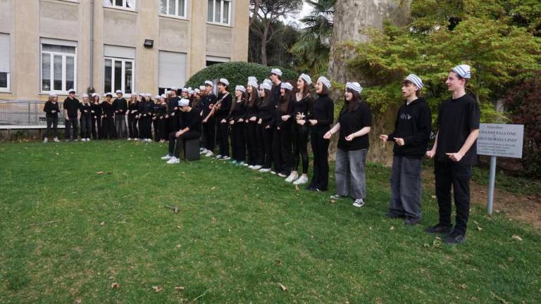 Za prizorišče so izvolili park za goriško mestno hišo, kjer so sooblikovali skupni kulturni program. Navzoče, med katerimi so bili tudi ravnatelja Peter Černic in Giovanna Petitti ter goriška podžupanja Chiara Gatta, je v živo popeljala dijakinja Athena Picech s svojo violino. Izvedla je začetni del Tartinijeve sonate Didone Abbandonata (Zapuščena Didona). Profesorica na liceju Alighieri Rosa Tucci se je nato zahvalila Občini Gorica za prostor, ki je bil med drugim pred kratkim poimenovan po Giovanniju Falconeju in Paolu Borselliniju. »Nadejam se, da bo to le prvi od mnogih skupnih dogodkov,« je zaželela Tucci.