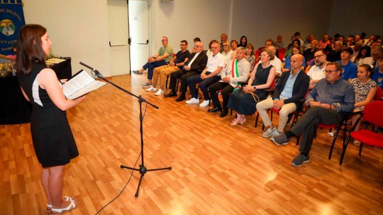 V dvorani sovodenjskega kulturnega doma se je zbralo veliko ljudi, ki so prisluhnili govoru župana Luke Piska, krajšemu kulturnemu programu in podeljevanju številnih priznanj. Omeniti gre, da so sovodenjski praznik s svojo prisotnostjo počastili delegacija pobratene Škofje Loke s podžupanjo Tino Teržan na čelu, župan Doberdoba Peter Ferfoglia in podžupanja Števerjana Martina Valentincic. Program, ki ga je vodila članica KD Sovodnje Nika Tomsič, je uvedla glasbena točka, ki sta jo prispevali gojenki Glasbene matice Sofija Marussig na violino in Marta Marussig na klavir. Glasbenici je pripravila prof. Ambra Cossutta.