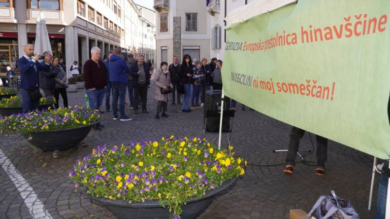 Pred goriško občino je v soboto, 12. aprila, potekal še tretji shod pod geslom Mussolini ni moj someščan! - Gorica evropska prestolnice hinavščine. Prvega je skupina kulturnih delavcev, umetnikov in drugih občanov Gorice in Nove Gorice priredila 1. februarja, in sicer kmalu zatem, ko je goriški občinski svet z glasovi večine zavrnil zahtevo po odvzemu častnega meščanstva Benitu Mussoliniju.
