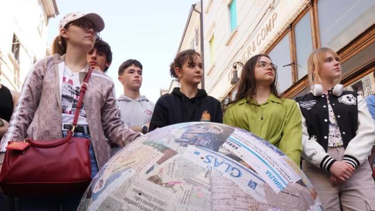 Želja po miru in bratstvu med narodi je bila glavno sporočilo množičnega umetniškega performansa, ki je popestril sobotni goriški dopoldan. Na Travniku in v Raštelu so ga uprizorili dijaki umetnostnega liceja Maxa Fabianija iz Gorice, katerim so se spontano pridružili tudi nekateri občani - otroci in odrasli. V performansu so v goriške časopise ovito kroglo italijanskega umetnika Michelangela Pistoletta, ki se je ob odprtju Evropske prestolnice kulture GO! 2025 prvič zakotalila od Gorice do Nove Gorice, spojili z simbolom Tretjih nebes (v it. Terzo paradiso), Pistolettovo predelavo simbola neskončnosti, v katerem iz združitve dveh nasprotij nastaja harmonična celota - novo človeštvo.