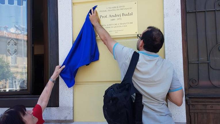 Na pročelju gostilne Turri v Štandrežu so v soboto, 11. junija, odkrili ploščo, ki jo je kulturno društvo Oton Župančič ob petdesetletnici smrti postavilo v spomin na pesnika, pisatelja in prevajalca Andreja Budala, ki je v tem poslopju živel od 1. aprila 1946 do decembra 1947. Med krajšo svečanostjo je navzoče nagovorila predsednica kulturnega društva Oton Župančič Nataša Paulin, medtem ko je Gorazd Budal prebral pričevanje Marie Majde Jalen, ki se je rodila leta 1934 v Ljubljani in je bila družinska prijateljica Budalovih; danes živi v Vidmu. Ker na Beli Peči pri Trbižu, kjer je živela v otroških letih, ni bilo slovenskih šol, so jo starši leta 1946 – takrat je imela dvanajst let – vpisali v slovensko srednjo šolo v Gorico, tako da je zatem stanovala skupaj z Budalovimi v hiši, na katero so včeraj namestili spominsko ploščo.