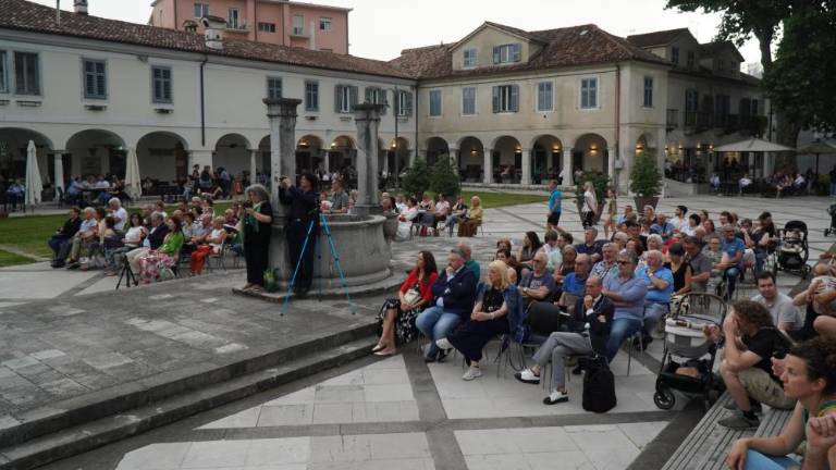 Pravo EPK-jevsko vzdušje je v petek zvečer zavladalo na goriškem Trgu sv. Antona, kjer so slovensko-italijanski orkester GONG in drugi nastopajoči pričarali s čustvi in mirovniškimi sporočili nabit večer. Prvi iz niza Koncertov pod zvezdami je uvodno postregel s premierno izvedbo slovesne, a hkrati razigrane himne Evropske prestolnice kulture 2025 za pihalni orkester, ki jo je uglasbil mladi Vid Bavcon iz Solkana in bo ena od simbolnih pesmi projekta GO! 2025, v nadaljevanju pa so prvič zazvenele izvedbe skladbe Želja po miru, Veter z Balkana in Pomlad ter številna druga dela.