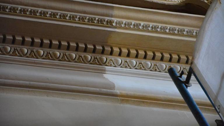 Tokratni konservatorsko-restavratorski posegi v ladji cerkve Gospodovega oznanjenja Mariji na Kostanjevici so se začeli v letošnjem juliju. Projekt je obsegal konservatorsko-restavratorski poseg na štukaturah kapitelov, pilastrov in profiliranega venca v ladji cerkve Gospodovega oznanjenja Mariji na Kostanjevici. »Delo je zajemalo območje od vhodne stene do polovice ladje (polovica celotnega dela). Izvedla se je pritrditev odstopljenih elementov, utrjevanje nosilca, pritrditev in fiksiranje odstopajočih delov na arhitekturni nosilec. Štukature so bile nato očiščene, utrjene, pokitane in retuširane, na nekaterih delih je bila nanesena nova pozlata. Iz pilastrov se je odstranila neustrezna sekundarna rjava preslikava. Barvna plast je bila utrjena, pokitane so bile vse večje in manjše poškodbe. Na koncu je sledila barvna izpopolnitev štukatur, barvno usklajevanje dodelanih plasti štukatur,« našteva odgovorna konservatorka Minka Osojnik, ki skupaj s kolegico Marto Bensa, odgovorno konservatorko-restavratorko bdi nad projektom. Obe sta zaposleni na novogoriški enoti Zavoda za varstvo kulturne dediščine.