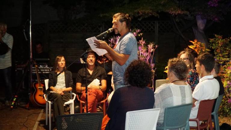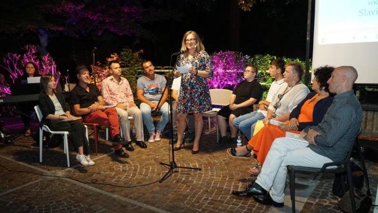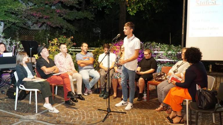 Slovenščina, italijanščina in furlanščina so se prepletale v literarnih delih avtorjev, ki so se v četrtek predstavili na Literarnem aperitivu na dvorišču KB Centra. Andreina Trusgnach, David Bandelj, Matej Gruden, Matej Tratnik, Anja Mugerli, Liam Calabrese, Alan Fraia, Veronika Furlan, Fiorella Frandolic in Raffaele Serafini so ponudili nekaj utrinkov iz svojih opusov. Besede in verzi so se prepletali z glasovi pevk Andreje Saksida, Giulie Sartori in Tine Bolko iz razreda solopetja Martine Feri na Glasbeni matici. Srečanje je zrežirala in povezovala Slavica Radinja, ki je poskrbela tudi za večino prevodov v italijanščino oz. slovenščino. Večer je nastal v organizaciji ZSKD s pokroviteljstvom občin Gorica, Sovodnje, Števerjan in Doberdob, Javnega sklada RS za kulturne dejavnosti, Dežele FJK in Urada RS za Slovence v zamejstvu in po svetu. Vključen je bil med predfestivalske dogodke Slofesta, ki bo v Trstu od 15. do 17. septembra. Na začetku je pozdravila pokrajinska predsednica ZSKD Maja Humar.