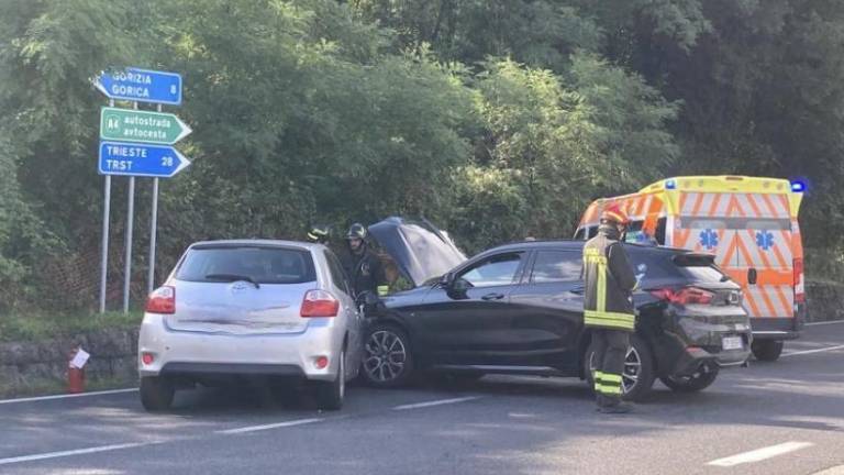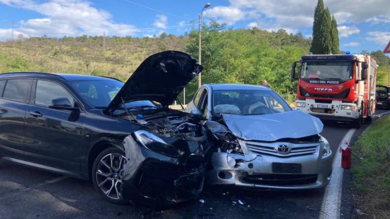 Danes zjutraj sta na deželni cesti št. 55 pri Devetakih trčila avtomobila. Eden je vozil v smeri proti Trstu, drugi pa je po vsej verjetnost izsilil prednost na križišču, tako da sta silovito trčila.