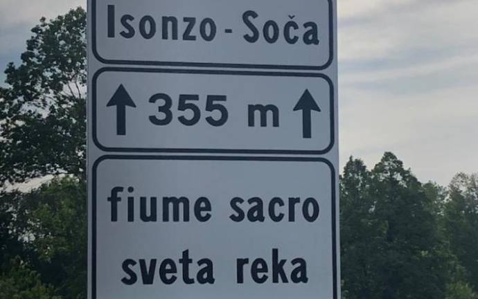 Na avtocesti A34 med Vilešem in Gorico po novem na reko Sočo opozarja tudi slovenski napis. Novo tablo v italijanskem in slovenskem jeziku so postavili na območju sovodenjske občine, kjer seveda veljajo določila zaščitnega zakona o vidni dvojezičnosti. Za namestitev je poskrbela družba Autovie venete, ki avtocestni odsek upravlja, za uveljavitev 10. člena zakona št. 38/2001 pa je poskrbela Služba za jezikovne pravice ZaJezik, ki jo vodita Julijan Čavdek in Livio Semolič, potem ko jo je na pomanjkanje dvojezične table opozorila sovodenjska uprava.