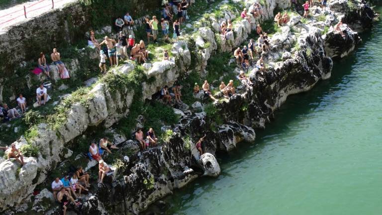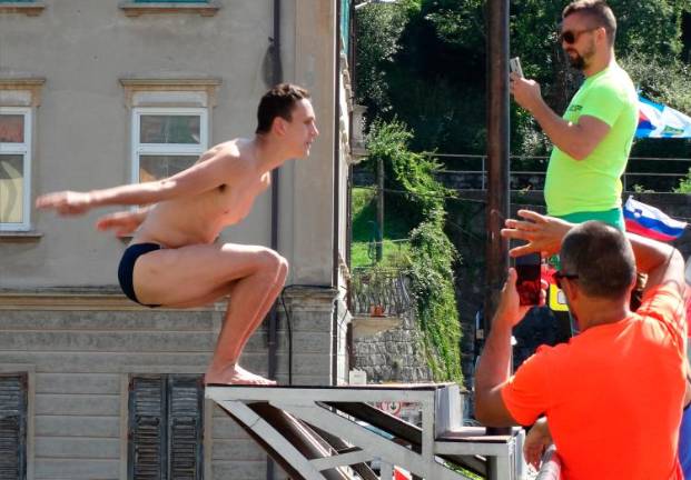 V Kanalu so upravičeno zadovoljni s 30. jubilejnimi skoki z mosta, saj so ti na bregove Soče včeraj, 12. avgusta, popoldan privabili veliko obiskovalcev in jim pričarali pravi spektakel, v katerem je med 16 tekmovalci (med njimi je bila tudi ena tekmovalka) iz Slovenije, Italije, ZDA, Velike Britanije, Bosne in Hercegovine ter Srbije slavil komaj 17-letni Britanec Aidan Heslop. Zmago si je prislužil s štirikratnim saltom s pol obrata. Prireditev, ki je nastala po vzoru skokov iz Mostarja, vsako leto v avgustu napolni bregove Soče z obiskovalci od blizu in daleč, kar ne preseneča, saj gre za enega najlepših prizorišč tega atraktivnega in adrenalinskega športa pri nas. Tako je bilo tudi minulo nedeljo, ko je vsak od šestnajsterice tekmovalcev s 17-metrskega mostu za srečo v Sočo najprej vrgel rdeč nagelj, zatem pa so se z minuto molka poklonili dva tekmovalcema, ki ju letos ni bilo več med njimi: Andreju Beucu in Tržačanu Pinu Auberju. Skoki v Kanal so letos privabili med 500 in 600 obiskovalcev, organizatorji prireditve pa so poskrbeli tudi za bogat spremljevalni program.
