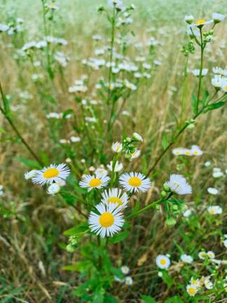 Enoletna suholetnica (v lat. Erigeron annuus): podobna je marjetici, vendar v resnici gre za invazivno vrsto, ki izvira iz Severne Amerike in se je v Evropi prvič pojavila proti koncu 17. stoletja. V zadnjih tednih je pobelila številne travnike od Gorice mimo Štandreža in sovodenjske občine vse do Doberdoba, Dola, Jamelj in še naprej. K njeni letošnji bujni rasti so vplivale zanjo optimalne vremenske razmere oz. deževno vreme iz prejšnjih tednov, zaradi katerega med drugim kmetje večinoma še niso pokosili travnikov oz. so s košnjo komaj začeli. Enoletna suholetnica je tako marsikje imela čas, da se je razrasla po marsikaterem nepokošenem zemljišču.