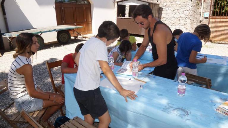 V jutranjih urah se je v zunanjih prostorih društva Skala zbiralo dvanajst otrok, ki so likovni delavnici sledili v dveh skupinah. Delavnica Štefana Turka je bila bolj umetniško usmerjena: na kartonaste podlage so mladi ustvarjalci naslikali skico fasade ali kotička pred stavbo v Gabrjah, ki so jo potem okrasili v tehniki kolaža in pobarvali s tempera barvami. Mladi tržaški stripar Jurij Devetak pa je ustvarjalnim navdušencem skušal podati osnovna pravila risanja karikatur in stripov. Udeleženci so preizkusili svoje spretnosti v risanju moške in ženske anatomije, risali so karikature in jih popačili z efekti pretiravanja.